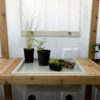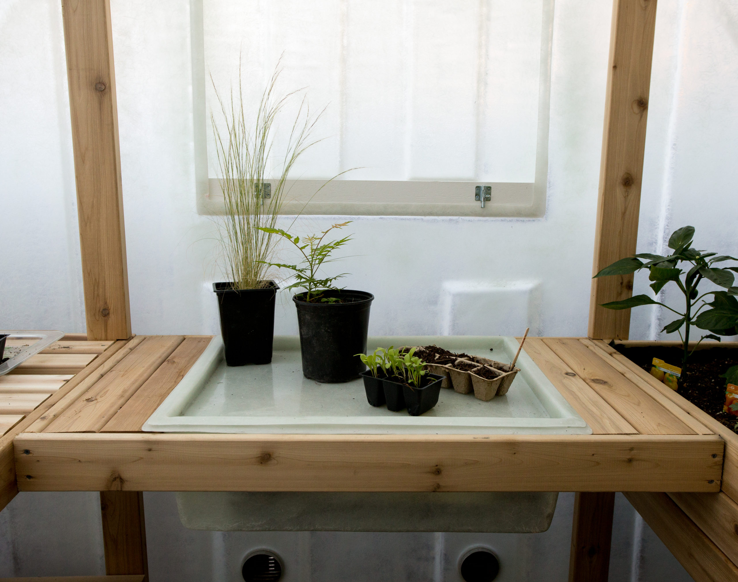 Our under window shelf is made from the same 100% cedar material as our work tables and raised bed planter. This shelf allows you to extend your work surface to the space under the back window which is an excellent location for our potting tray to mix your special blend of soils for seeding and transferring all your growing plants.